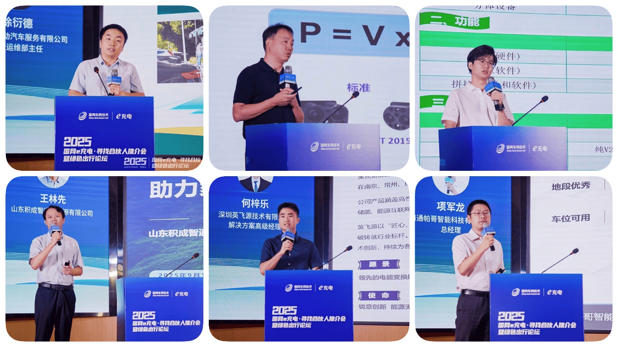 国网江西电动汽车服务有限公司建设运维部主任徐衍德以 “义利相兼,相互成就” 为主题进行发言。系统阐述了国网江西电动 “车、桩、网、电” 一体化的发展思路,分享了公司在江西地区构建 “城市网状、公路线状、乡镇点状” 充电服务网络的实践经验。此外,上海钛昕电气科技有限公司、江西驴充充充电技术有限公司、山东积成智通新能源有限公司、深圳英飞源技术有限公司、南通帕哥智能科技有限公司等企业代表,也分别围绕充电桩技术发展趋势、直流产品应用、乡镇充电市场机遇、车网互动技术价值及充电车位管理等内容展开分享,为行业发展提供多元视角与实践参考。